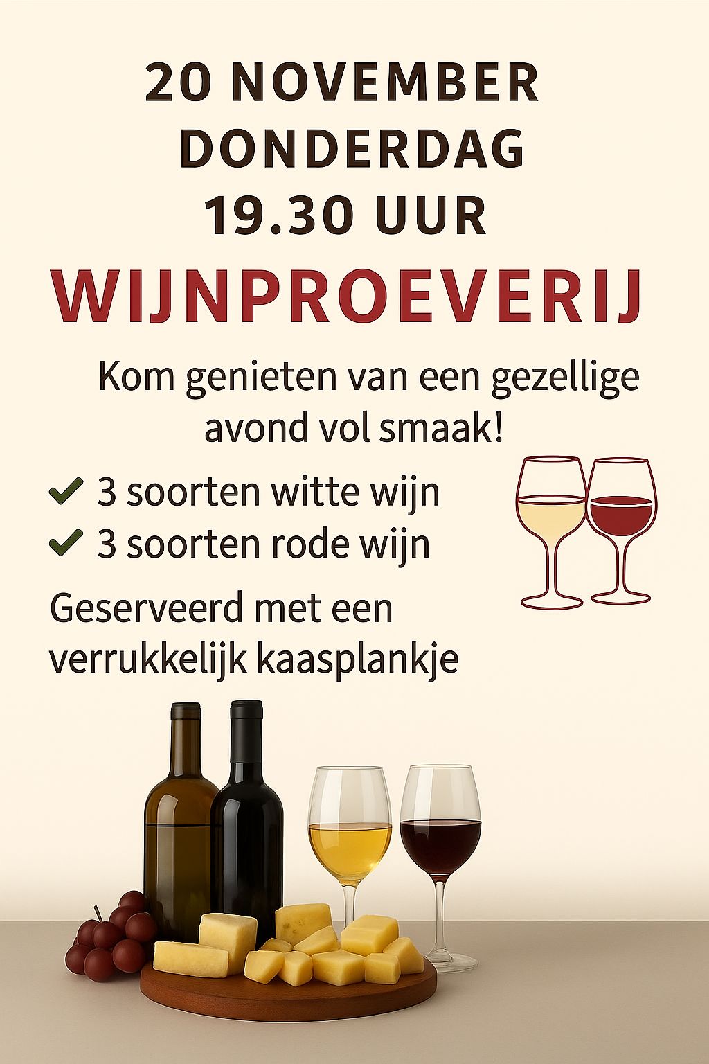 - 20 NOVEMBER Wijnproeverij 19.30 uur tijdens HDG toernooi