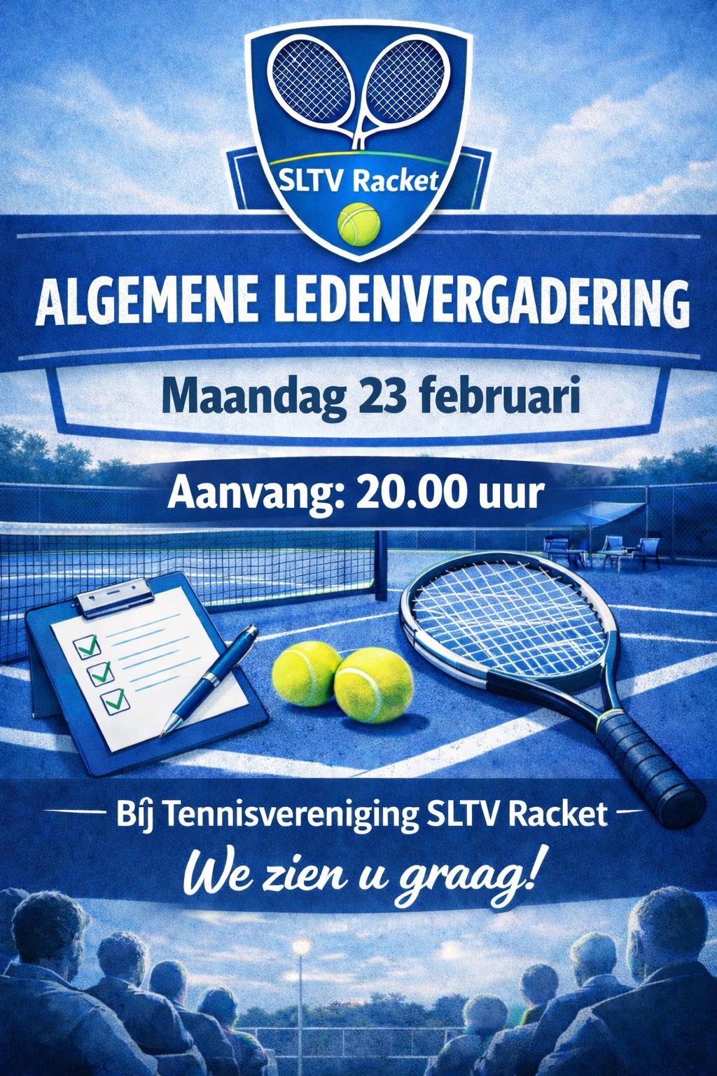 Het bestuur van Tennisvereniging SLTV Racket nodigt alle leden van harte uit voor de Algemene Ledenvergadering (ALV).